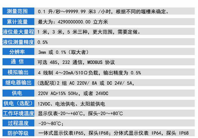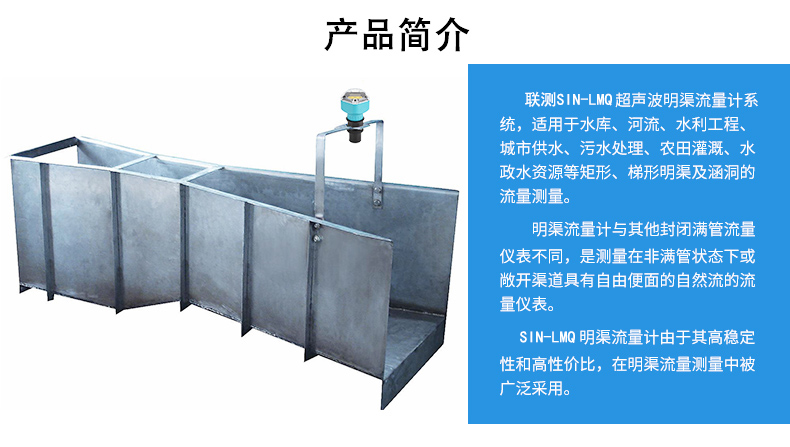 超聲波明渠流量計(jì)與量水堰槽配合使用,測(cè)量明渠內(nèi)水的流量。主 要用于測(cè)量污水廠、企事業(yè)單位的污水排放口、城市下水道的流量及農(nóng) 田水利中的渠道等。