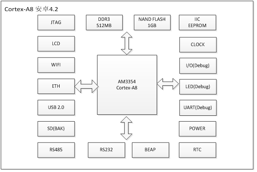 目前設(shè)計(jì)為1GB容量,對(duì)于android4.2 256MB的容量可完成系統(tǒng)存儲(chǔ),驅(qū)動(dòng)存儲(chǔ)。在燒寫(xiě)的u-boot kernel root時(shí)應(yīng)注意啟動(dòng)模式選擇,本方案將設(shè)計(jì)用于燒寫(xiě)和正常啟動(dòng)的boot薄碼開(kāi)關(guān)。