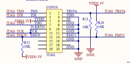 用于AM3354調(diào)試、仿真接口,支持邊界掃描。